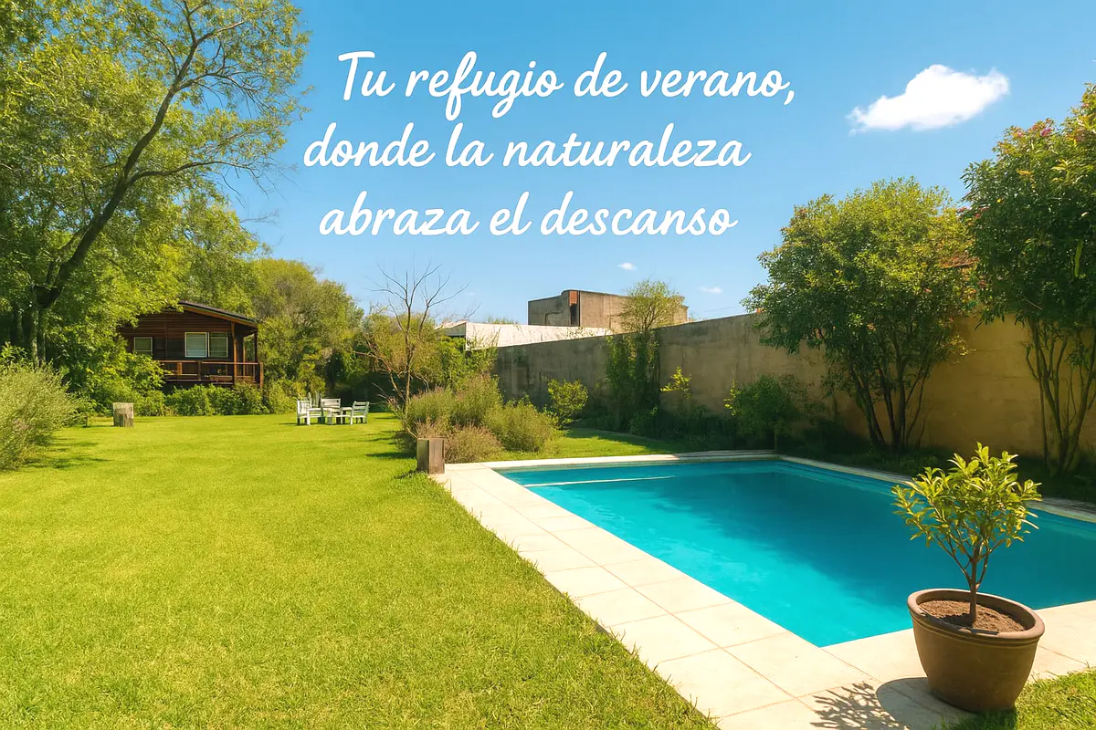 Amplio espacio verde con piscina.
